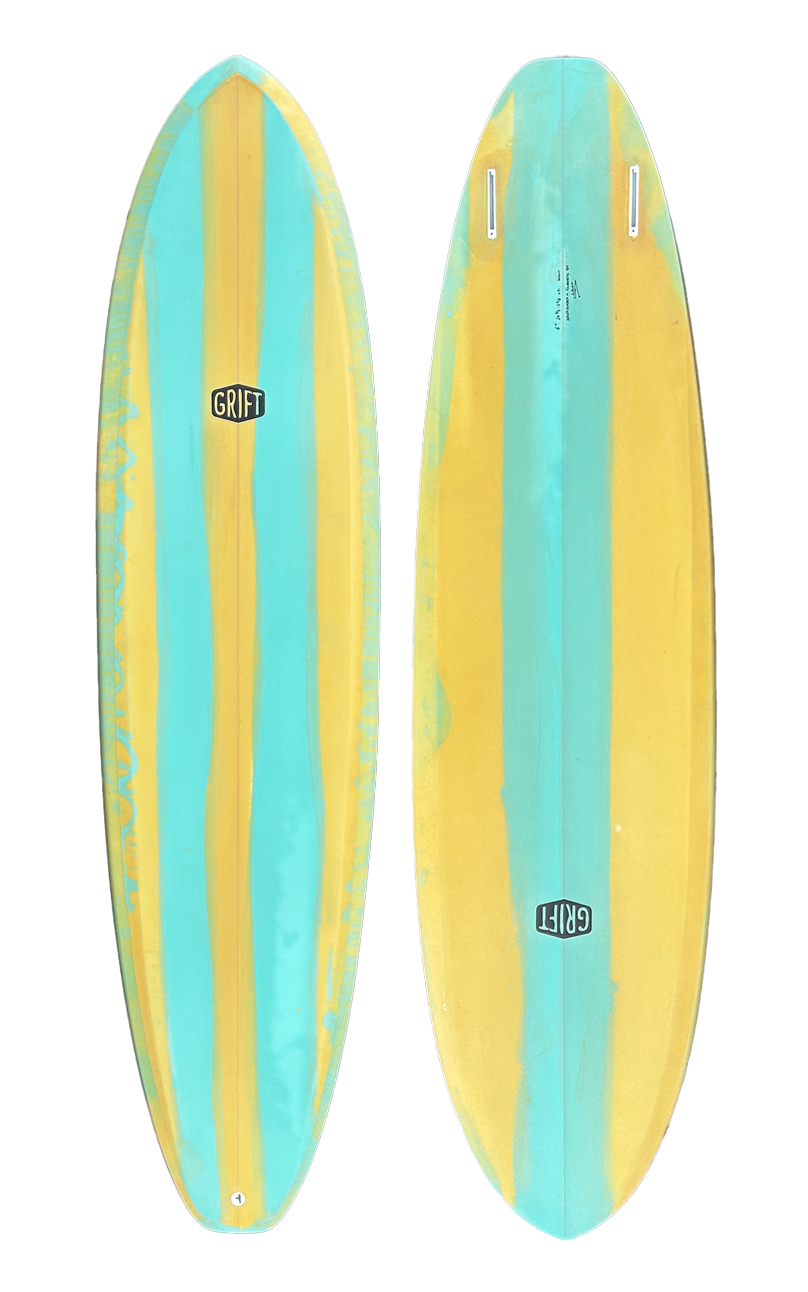 This mid-length was one I had a lot of fun trying to find the right outline and thickness, built for clean and long point breaks that never seem to end. The Snowy is Grifts one and only mid-length style board. It is exceptional in clean overhead surf and allows for seamless transitions across fatter surf. The twin style lower rocker gives it speed that you will enjoy in all types of surf, however dominating in fatter surf making it easy to outrun sections with little to no effort.